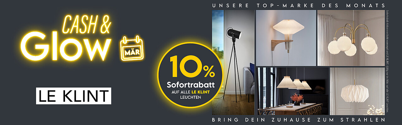 Skandinavisches Lichtdesign mit Seele. Mit unserer „Cash & Glow Aktion“ sichern Sie sich 10 % Rabatt auf alle Le Klint Leuchten. Exklusiv im März bis zum 31.03.2026.
